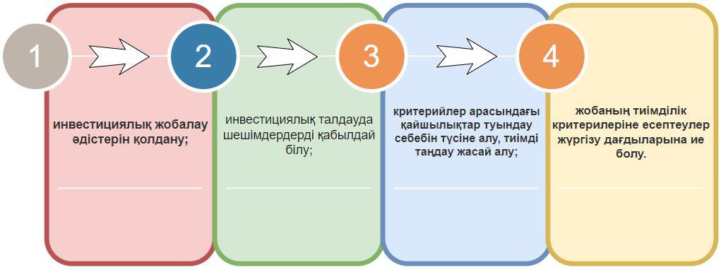 «Инвестициялық жобалау» курсы мыналарды қамтиды: